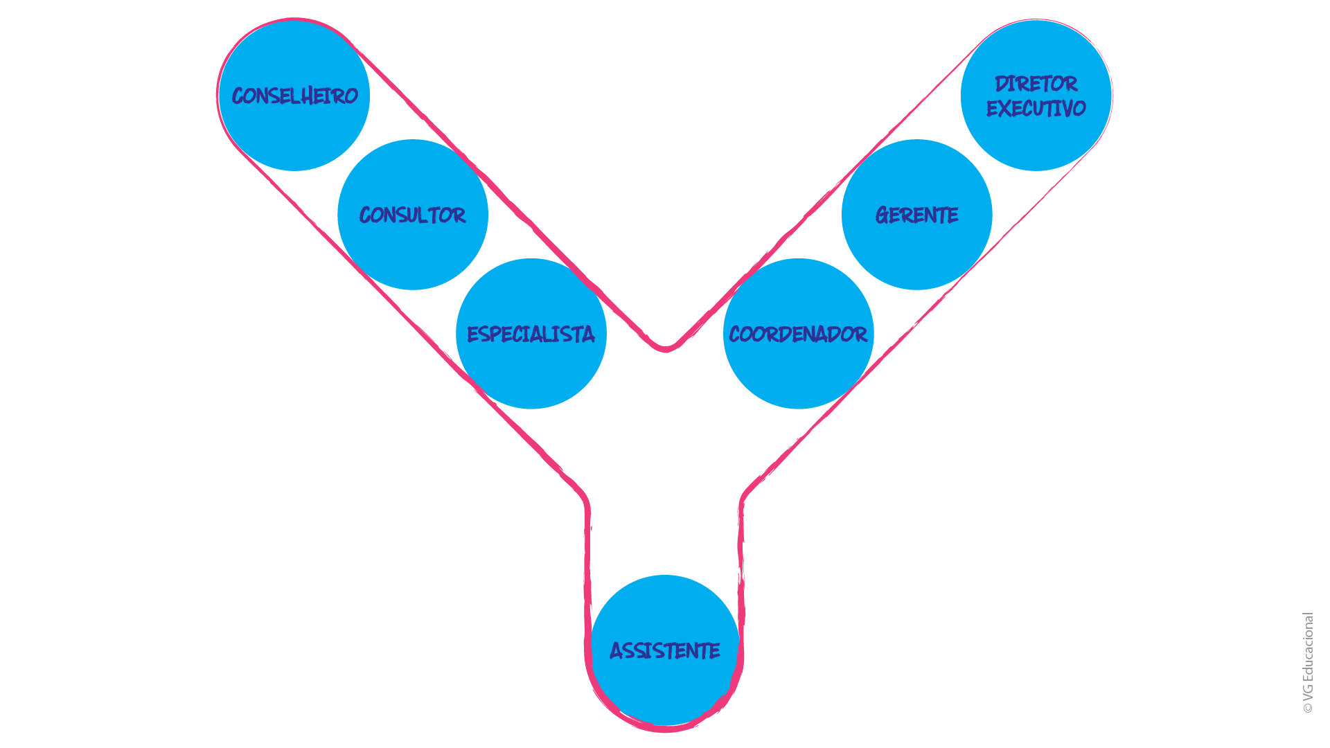 Quando acontece dentro das organizações, essa carreira é conhecida como Y e seu desenho é similar ao da imagem a seguir.
