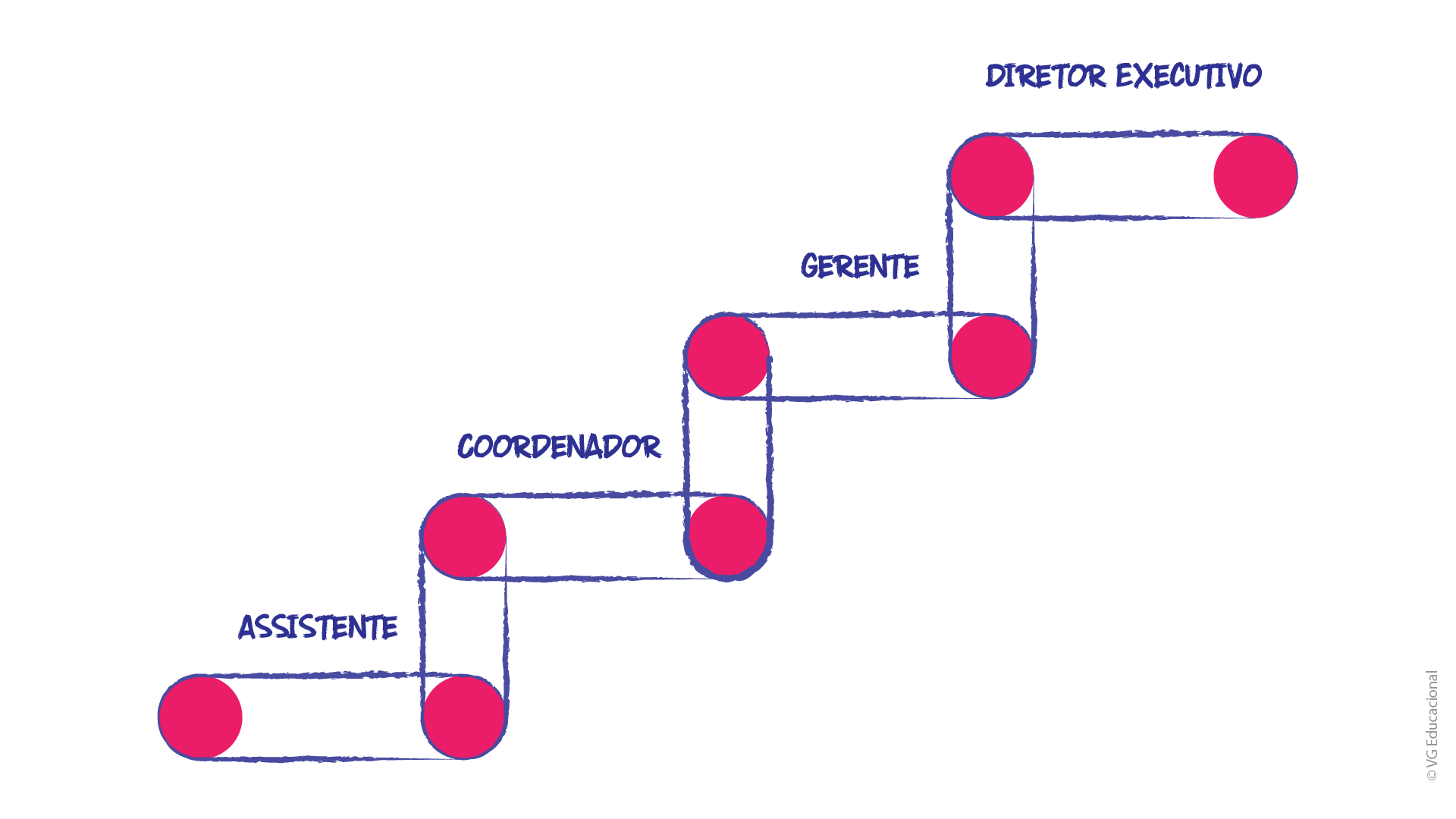 Há alguns anos, ter uma carreira sólida significava unicamente assumir, ao longo da vida profissional, posições hierárquicas cada vez mais elevadas, ou seja, subir verticalmente na carreira – que tem tudo a ver com o modelo de gestão tradicional, que vimos anteriormente. Trata-se da carreira em linha, cujo desenho poderia ser mais ou menos assim: